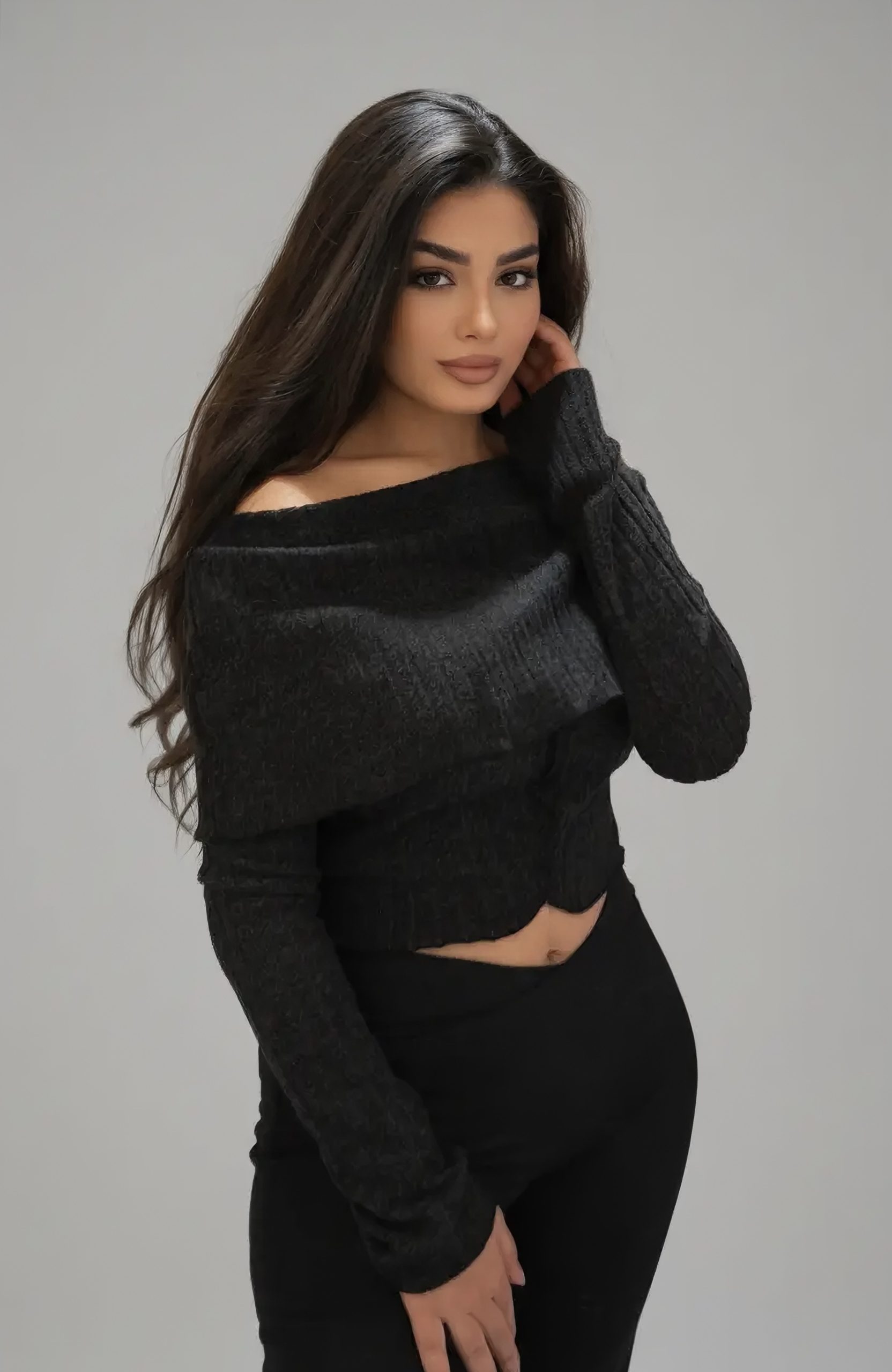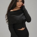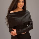 Top en maille à encolure bardot drapée à envers. Coupe ajustée et manches longues.