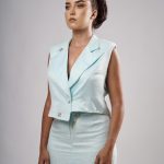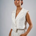 Gilet veste asymétrique avec col à revers prononcé et perlage fait à la main.